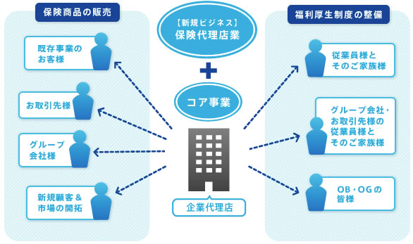 御社のお客様に、アフラックの保険を販売し、御社のサービス・ビジネスを拡大することができます。また、御社の福利厚生として、従業員の皆様に保険を販売することもできます。従業員自身の「がんをはじめとする病気やケガに対して、経済的に備えておきたい」という自助努力を助けるだけでなく、団体割引料率でご契約いただけるメリットもあります(退職後も保険契約は継続可能です)。